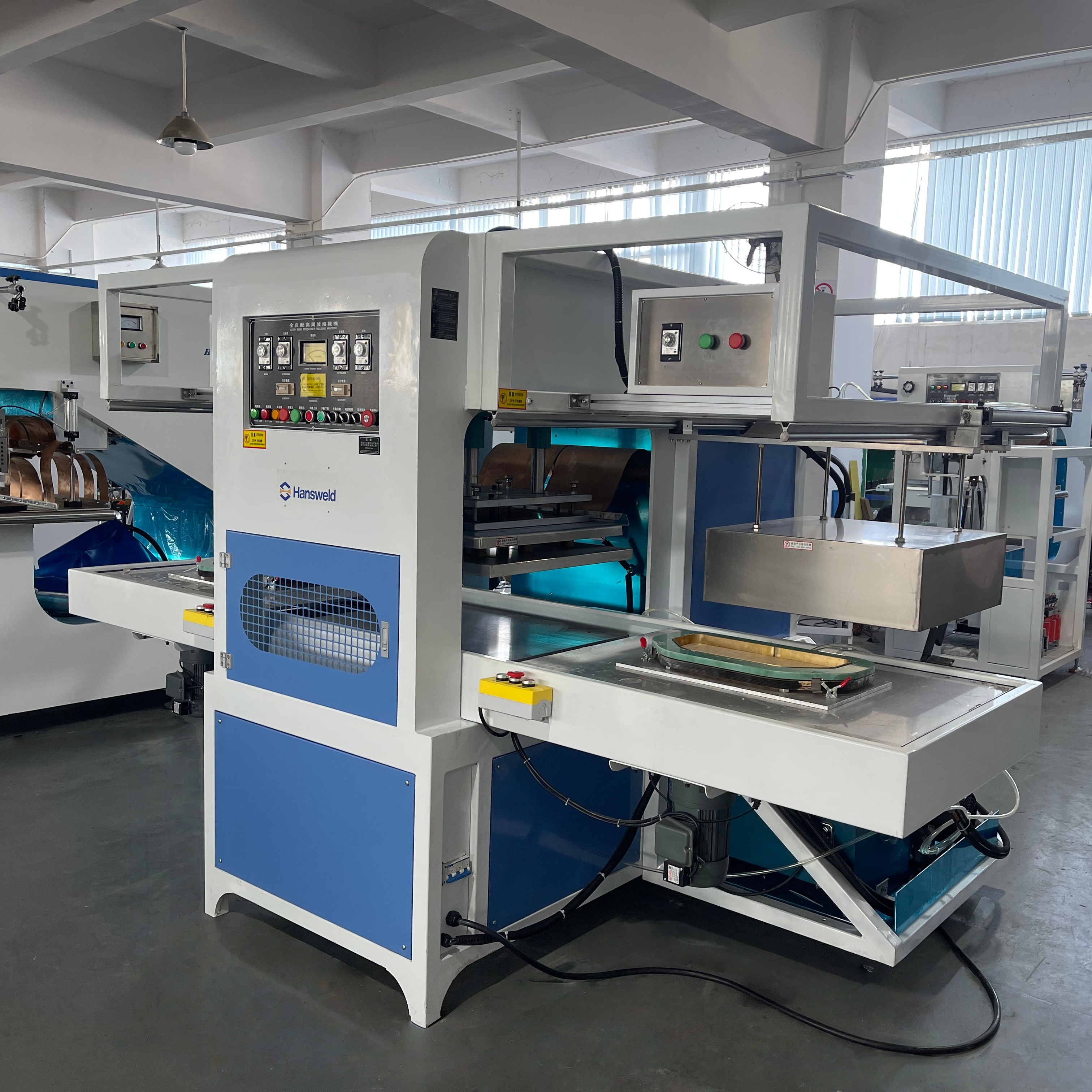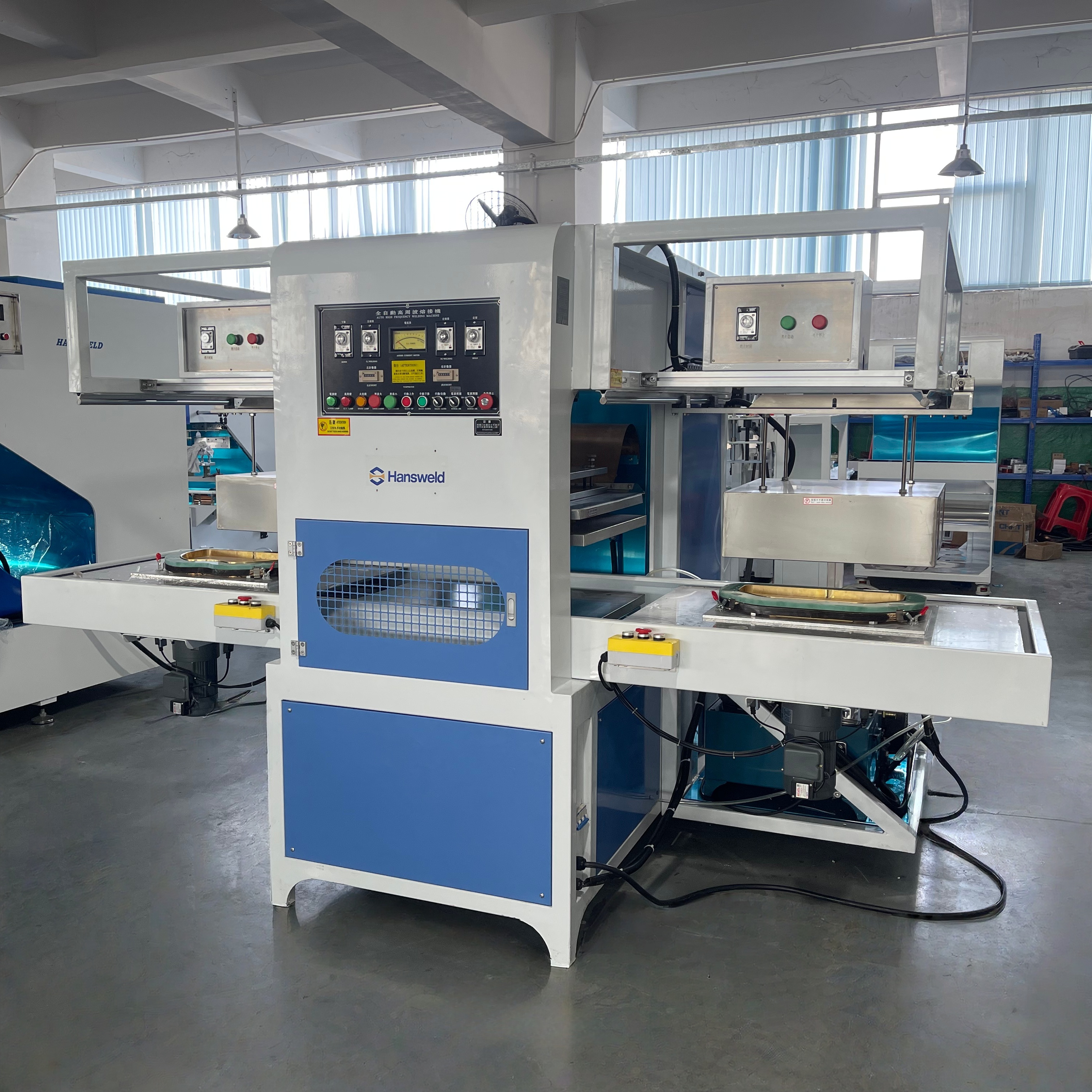 Equipped with 15kW high-frequency oscillation technology, the machine delivers fast welding speeds and uniform heat penetration, significantly reducing cycle time and supporting high-volume continuous production.