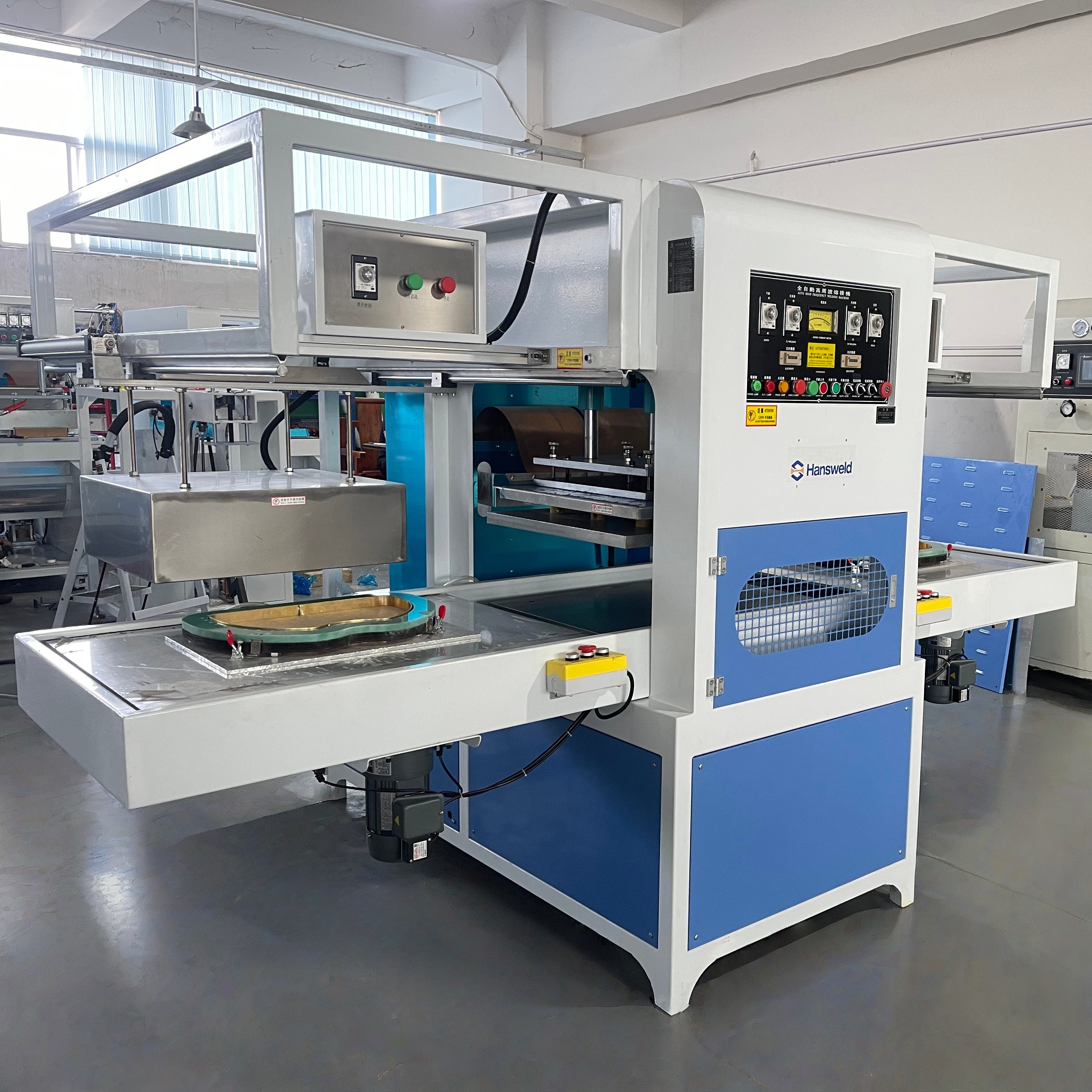 This machine features a 15kW high-frequency power output, specifically designed for the welding process of toilet seat cushions. It offers uniform heating, strong weld strength, and high efficiency, making it ideal for fast bonding and shaping of materials such as foam, PVC, and PU. Equipped with an intuitive control interface and smart control system, it allows precise adjustment of welding time and temperature to ensure consistent product quality. With a robust structure, it supports long-term continuous operation, making it an excellent choice for sanitary accessory manufacturing.