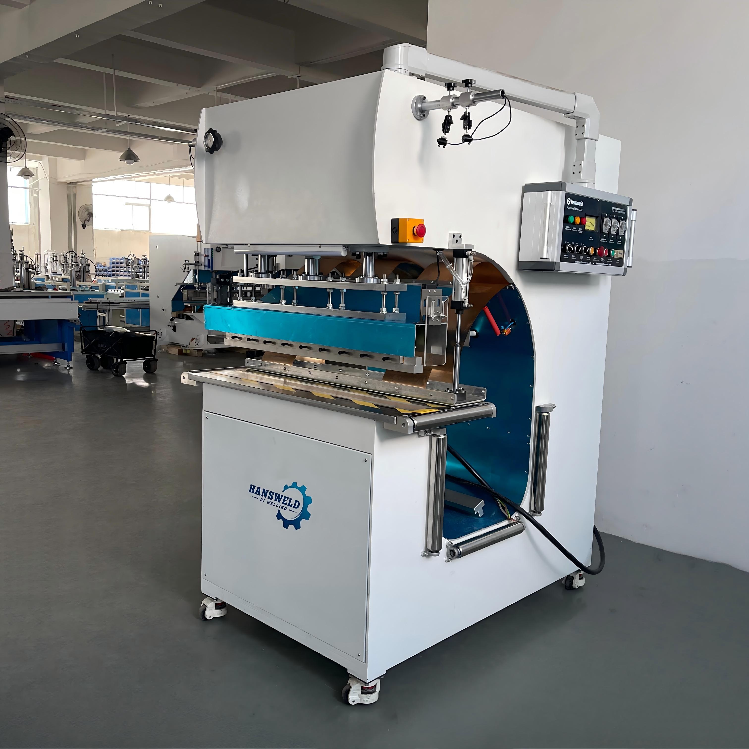 5.lt welds firmly, and the thickness of the material can be satisfied. The deep and wide feeding tank of the machine is convenient for large-area continuous connection. The machine can be rotated for continuous crimping and welding, and the round-trip length can be customizedreely.