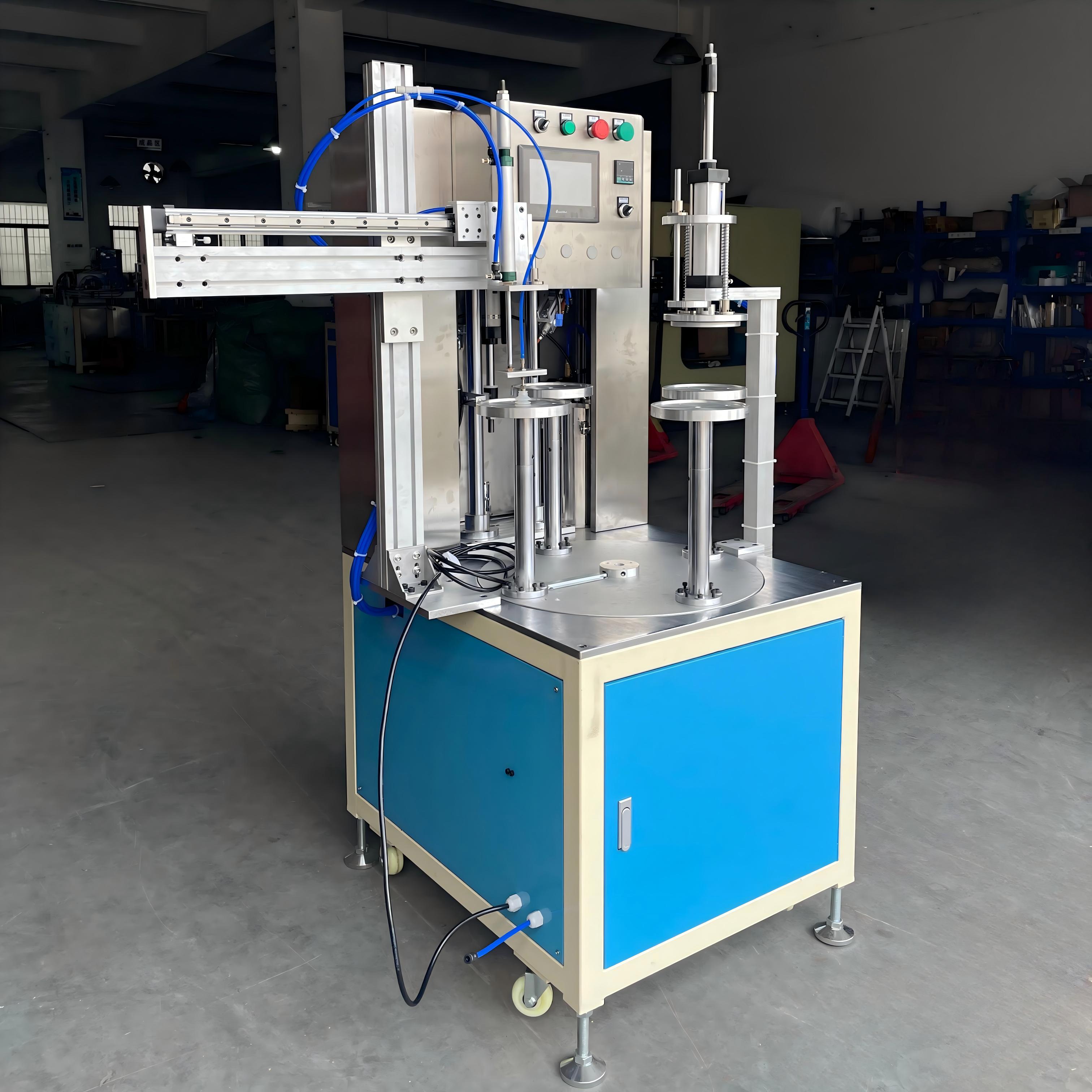 Cylinder-Specific Design: Equipped with curved positioning stations and a rotary gluing mechanism, it ensures even glue coverage on the curved bottom surface, preventing missed or excessive application.